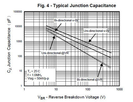• For bidirectional type having Vrwm of 10 volts and less, the IR limit is double.
