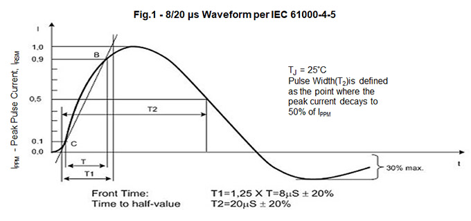 Peak Current Rating per 8/20 μs IEC 61000-4-5 (Fig 1) IPPM 1500 Amps