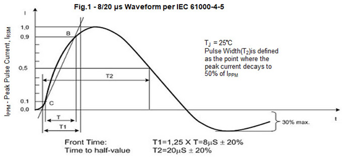 | Peak Current Rating per 8/20 μs IEC 61000-4-5 (Fig 1) | IPPM | 1000 | Amps |