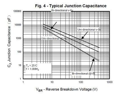• For bidirectional type having Vrwm of 10 volts and less, the IR limit is double.
