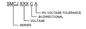 For Bidirectional use CA Suffix for types SMCJ5.0A thru types SMCJ440A (e.g. SMCJ5.0CA , SMCJ440CA)